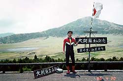 阿蘇登山道路に入ると、またもや料金所が現われる。料金は、なんと800円。 一人しか乗っていないんだから、もうちょっと安くして欲しい。ここまで来たからには、阿蘇山の行ける所まで行ってやる。 |
