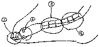(1)切歯 (2)犬歯(雄のみ)(3)前臼歯 (4)大臼歯(後臼歯)