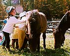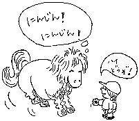 ![]() 仔馬とのふれあい。 毛がふかふかしてあったかいね。 |