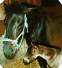 馬鈴は 平成8年5月27日 父・幸葵、母・鈴花のもとに生まれました。 |  <生後2日目の馬鈴と母馬の鈴花> |